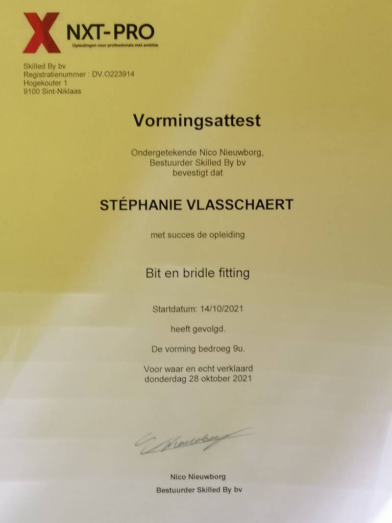 Niet enkel heb ik de basis hirudotherapy gedaan, maar alsook heb ik bij syntra midden-vlaanderen Bit en Bridle fitting gevolgd!